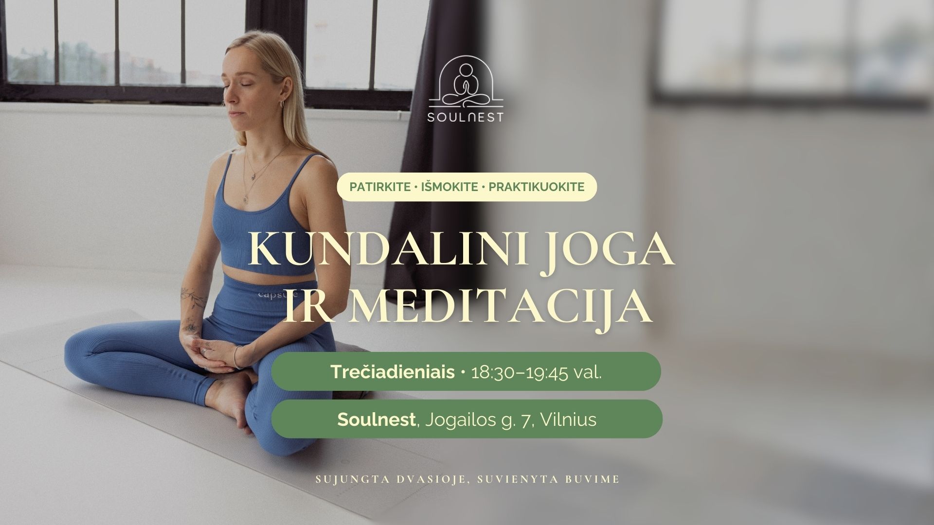 Kundalini joga – apjungia kvėpavimo technikas, judesį, mantras ir meditaciją. Tai daugiau nei fiziniai pratimai – tai gilesnis ryšys su savimi. Kundalini jogos metu sužadinama gyvybinė energija, stiprinamas kūnas, valosi protas ir mažėja stresas. Praktika padeda atrasti vidinę ramybę bei pusiausvyrą, stiprina intuiciją, dėmesio koncentraciją ir atsparumą emociniams iššūkiams.
